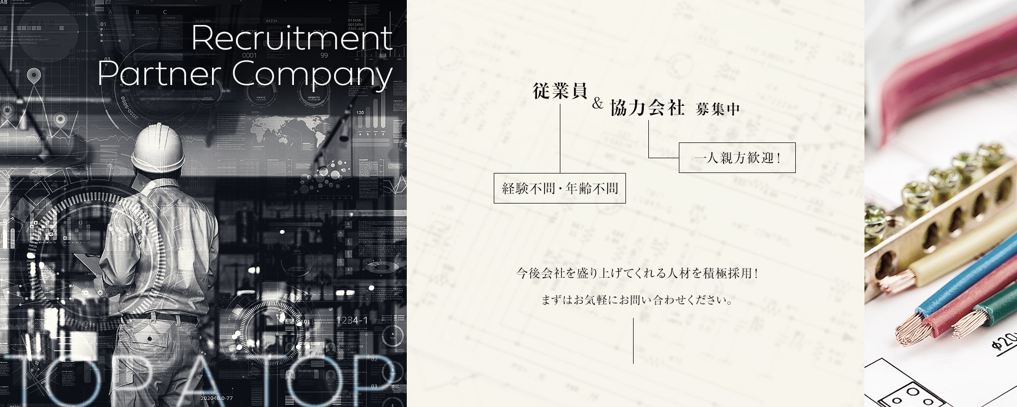 大阪府枚方市を拠点とする株式会社タパタップは、近畿エリアを中心に工場の新設工事や店舗・住宅などの現場で、各種電気設備工事、電気工事が伴う防犯カメラの設置工事等を手掛けています。エアコン、配線、コンセント、照明、変電設備など、日々の快適な暮らしに欠かせない「電気」を安心・安全に利用できるようにするための重要な役割を担ってます。